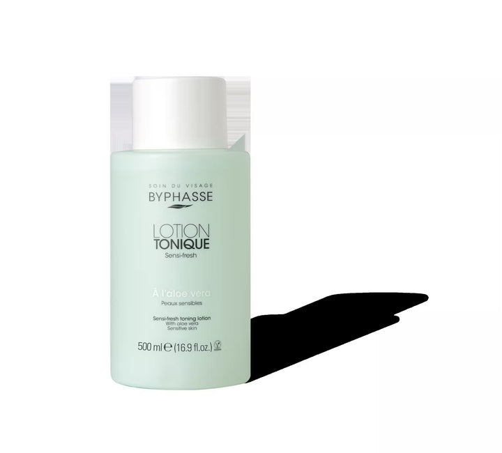 Byphasse Sensi-Fresh Toning Lotion me Aloe Vera është një tonik i butë dhe freskues, i krijuar posaçërisht për lëkurën e ndjeshme. Falë vetive qetësuese dhe hidratuese të Aloe Verës, ky tonik ndihmon në tonifikimin, qetësimin dhe freskimin e lëkurës pas pastrimit të fytyrës. Ai largon mbetjet e make-up-it dhe papastërtive, duke lënë lëkurën të hidratuar dhe të butë.