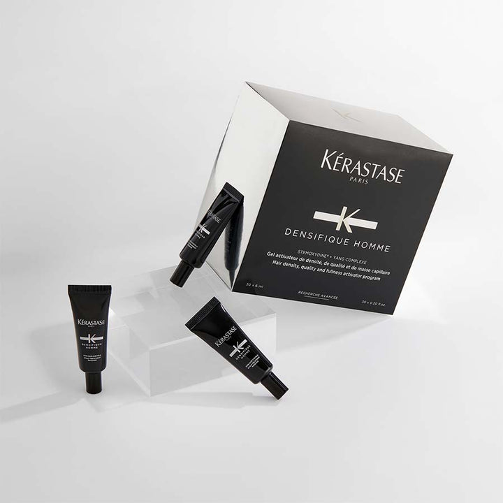 Kérastase Cure Densifique Homme është një trajtim intensiv për meshkuj me flokë të rralluar ose të prirur për hollim. Ky program 3-mujor ndihmon në ruajtjen e densitetit të flokëve falë një kombinimi të fuqishëm të Stemoxydine® dhe Yang Complex, duke siguruar më shumë masë dhe trashësi.