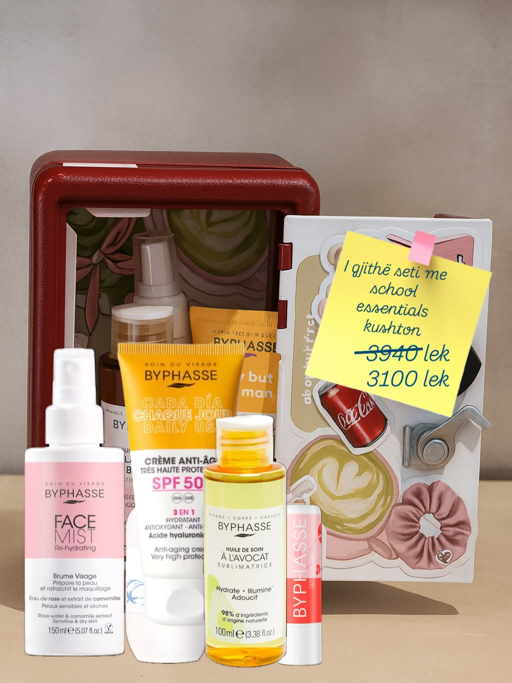 Zbulo kasafortën tënde personale të bukurisë: një përzgjedhje praktike dhe e kujdesshme për kujdesin e përditshëm, kudo që të jesh. Brenda saj do të gjesh produktet Byphasse: