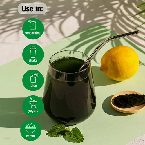 Shtoni 5 gr spirulinë në 300 ml smoothie, qumësht ose lëng, përziejeni mirë dhe konsumojeni.
