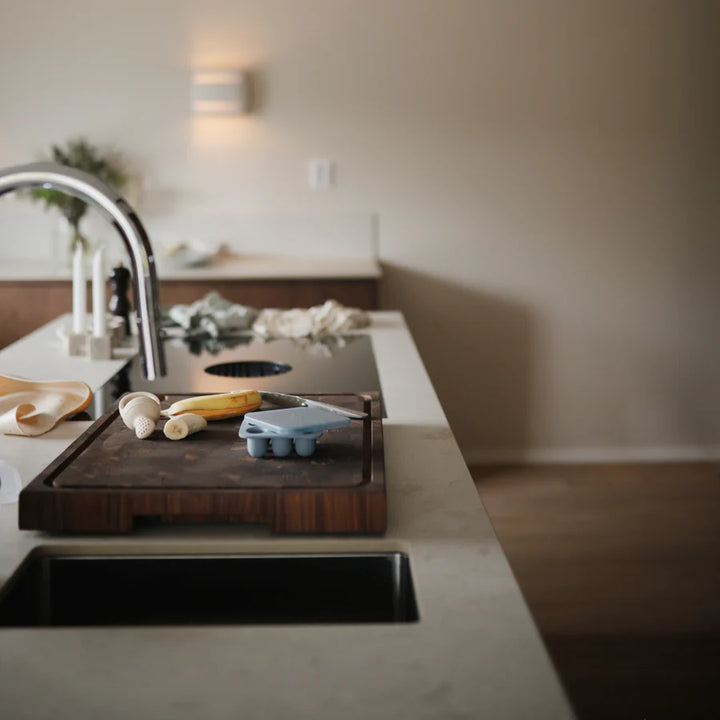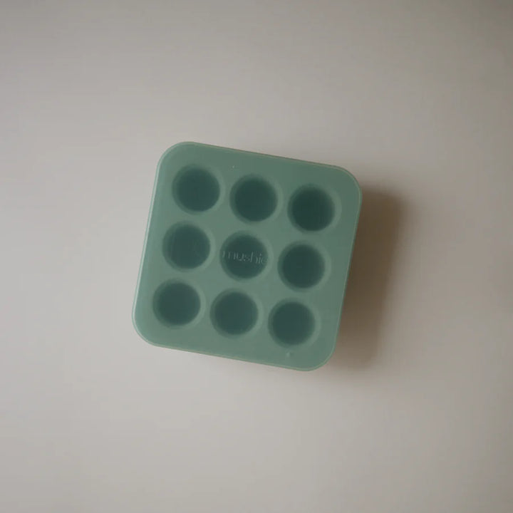 Kjo tabaka kompakte ngrirje prej silikoni është projektuar për ngrirjen e pureve dhe ushqimeve të grira që përshtaten në mënyrë të përsosur brenda kutive të ushqimit të freskët Mushie.