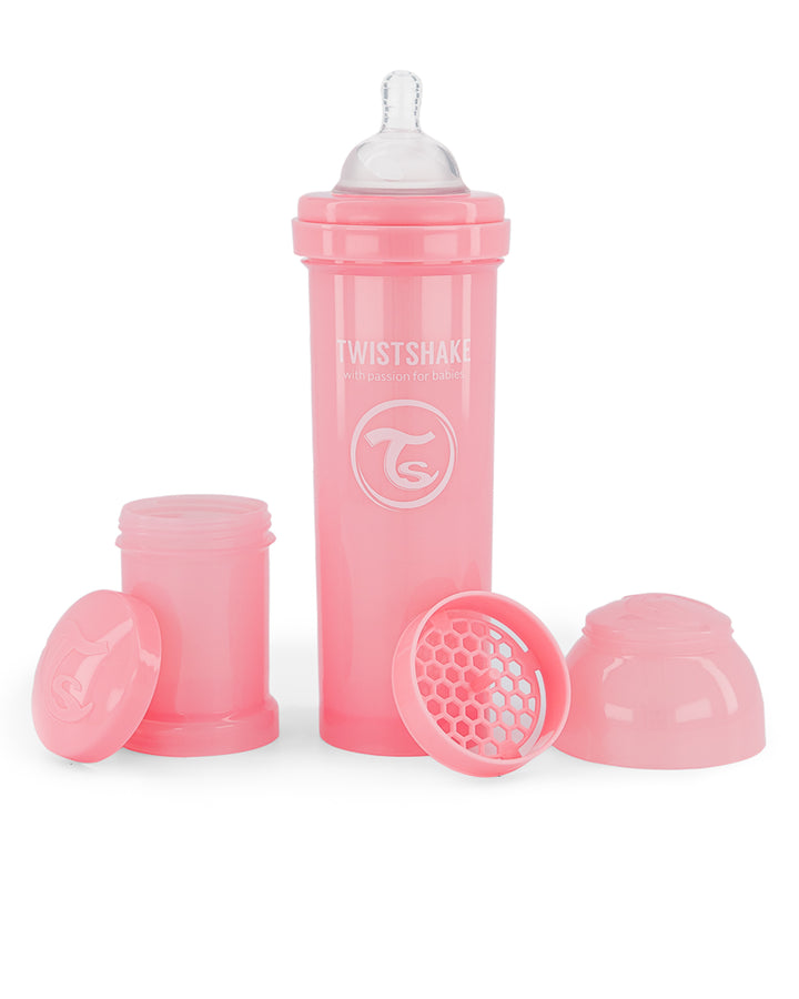 Twistshake Anti-Colic 330ml Pastel Pink është shishja ideale për fëmijët që po kalojnë nga biberoni në përdorimin e shishes. Me një kapacitet prej 330 ml dhe dizajn ergonomik, ajo është e përshtatshme për fëmijët mbi 4 muajsh.