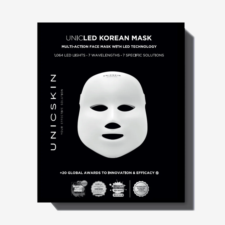 UNICLED Korean Mask është një maskë inovative LED e dizajnuar në Korenë e Jugut, e cila kombinon teknologjinë më të avancuar të dritës me kujdesin e lëkurës për të ndihmuar në përmirësimin e cilësisë dhe pamjes së saj. Me drita LED me shumë spektër (të kuqe, blu, jeshile dhe më shumë), kjo maskë synon problemet specifike të lëkurës si aknet, njollat, rrudhat dhe mungesën e shkëlqimit. Përdorimi i rregullt ndihmon në rigjenerimin e qelizave të lëkurës, reduktimin e inflamacionit dhe stimulimin e prodhimit natyral të kolagjenit.