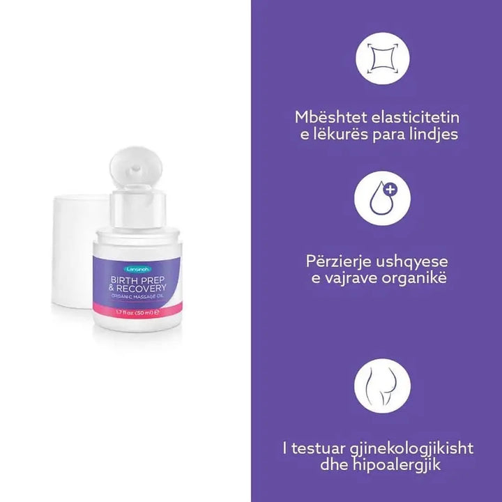 Vaji organik i përgatitjes para lindjes së Lansinoh ushqen dhe rregullon lëkurën e perineumit me anë te masazhit perineal, i cili është vërtetuar se ndihmon në parandalimin e çarjes gjatë lindjes. Vaji perineal është krijuar për t’u përdorur për masazhimin e perineumit dhe zones se barkut nga java e 34-të e shtatzënisë.